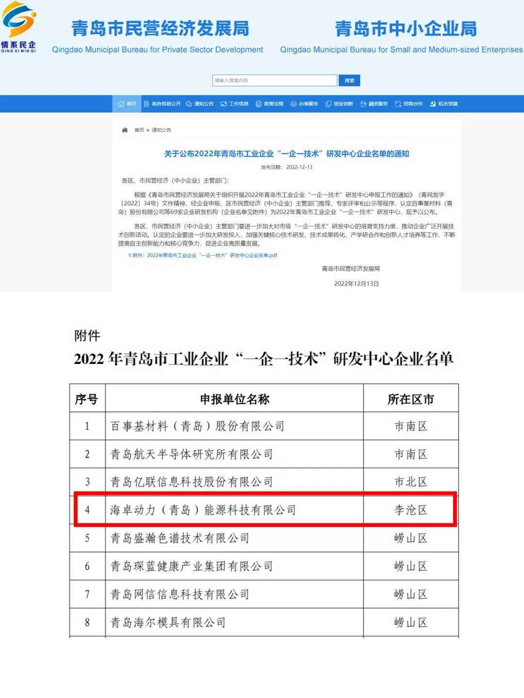 近日,青島市民營經(jīng)濟(jì)發(fā)展局公布了2022年青島市工業(yè)企業(yè)“一企一技術(shù)”研發(fā)中心企業(yè)名單。經(jīng)企業(yè)申報、區(qū)市民營經(jīng)濟(jì)(中小企業(yè))主管部門推薦、專家評審和公示等程序,海卓科技順利上榜,被認(rèn)定為青島市“一企一技術(shù)”研發(fā)中心。